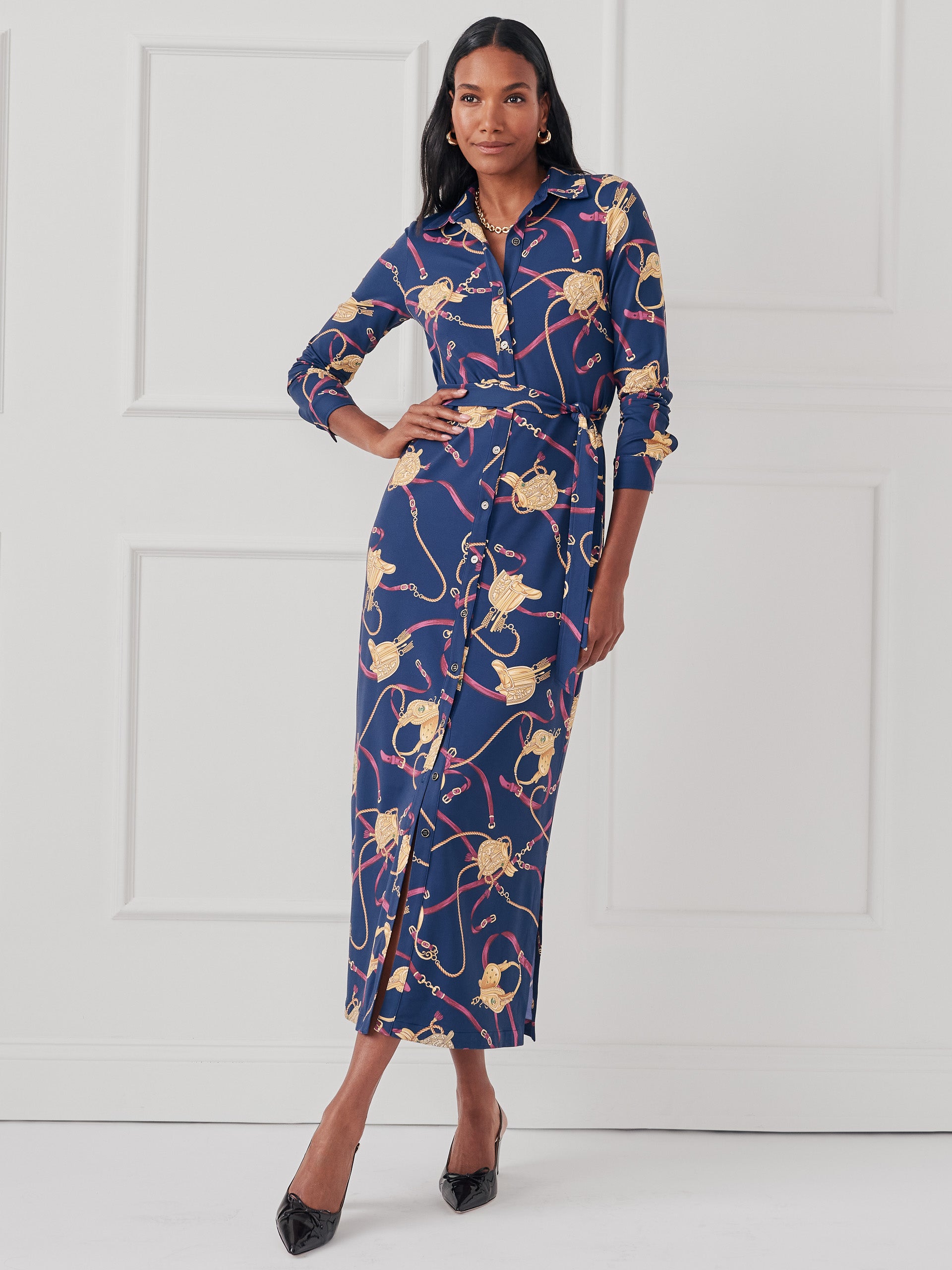 We reimagined the shirtdress as only we can: by crafting it in our signature, wrinkle-free Catalina Cloth and casting it in our Neo Scylla Heraldic print.