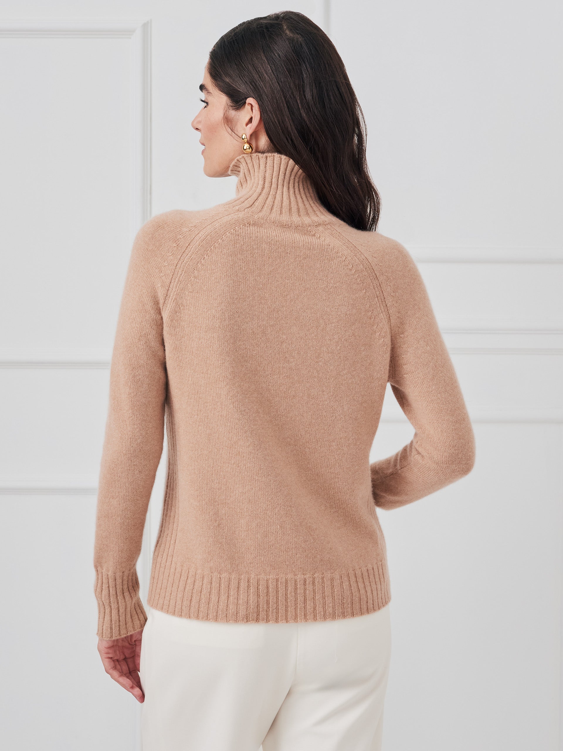 Long sleeves Turtleneck Ribbing at sides Ribbed detailing on cuffs, neck & hem 100% Cashmere Dry clean only. Imported. Size & Fit23.5″ long from top of center back (size M) Gabby is 5’9.5″ and wearing a size XS.
