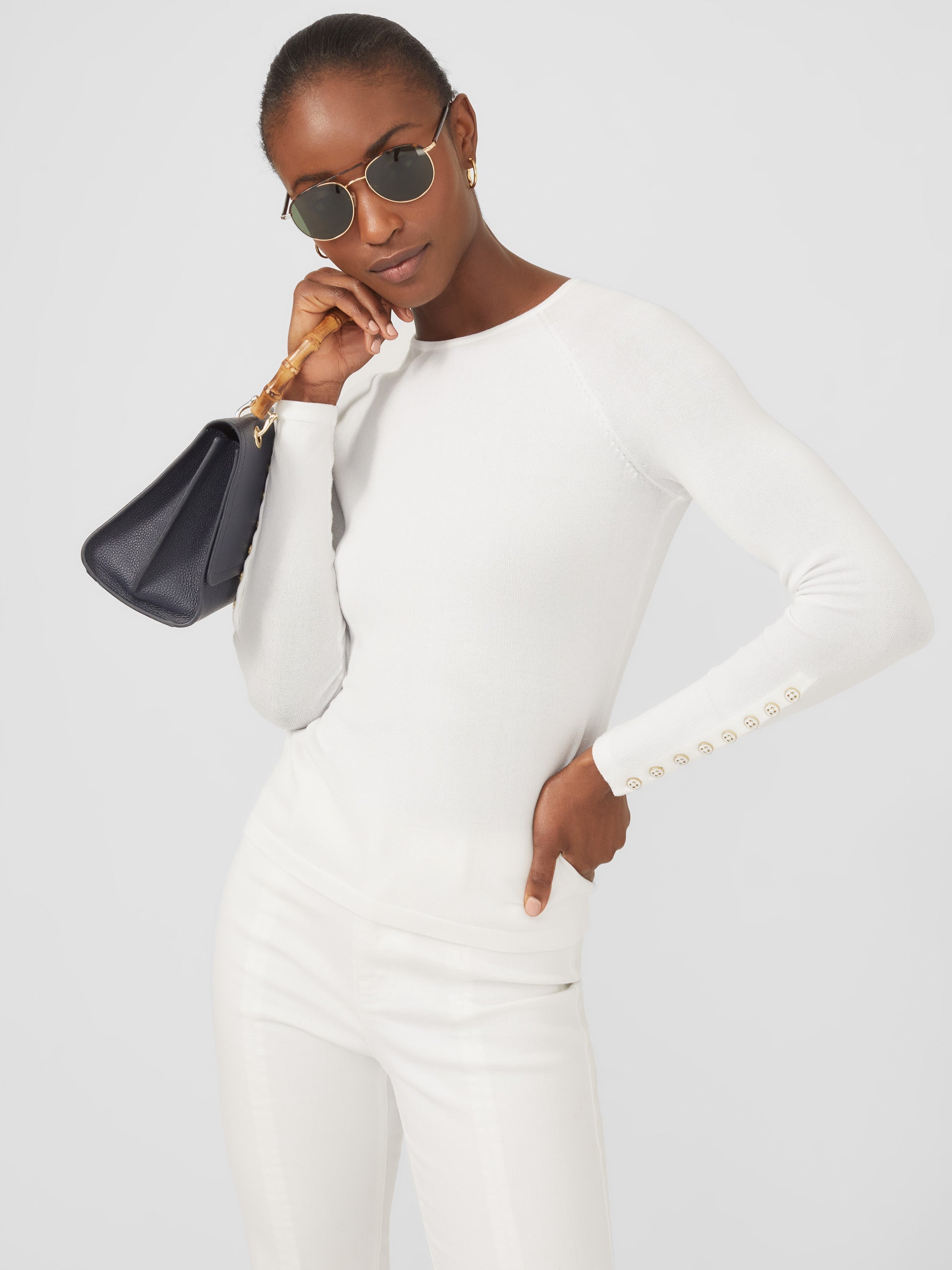 Crewneck. Long sleeves. Button accent along sleeves. 55% Cotton, 45% Modal Hand wash cold. Lay flat to dry. Imported. Size & Fit Classic fit 24.5″ long from top of center back