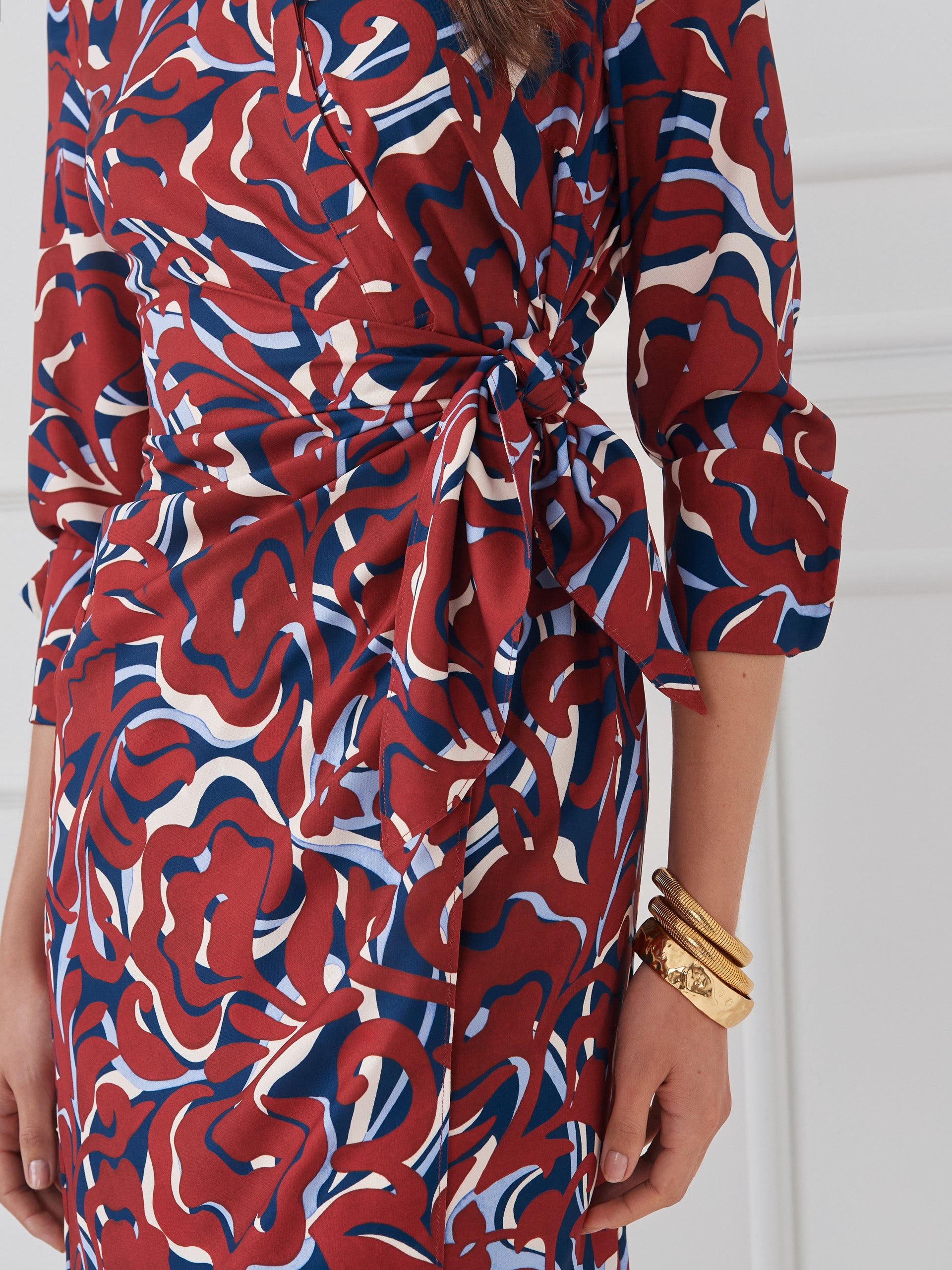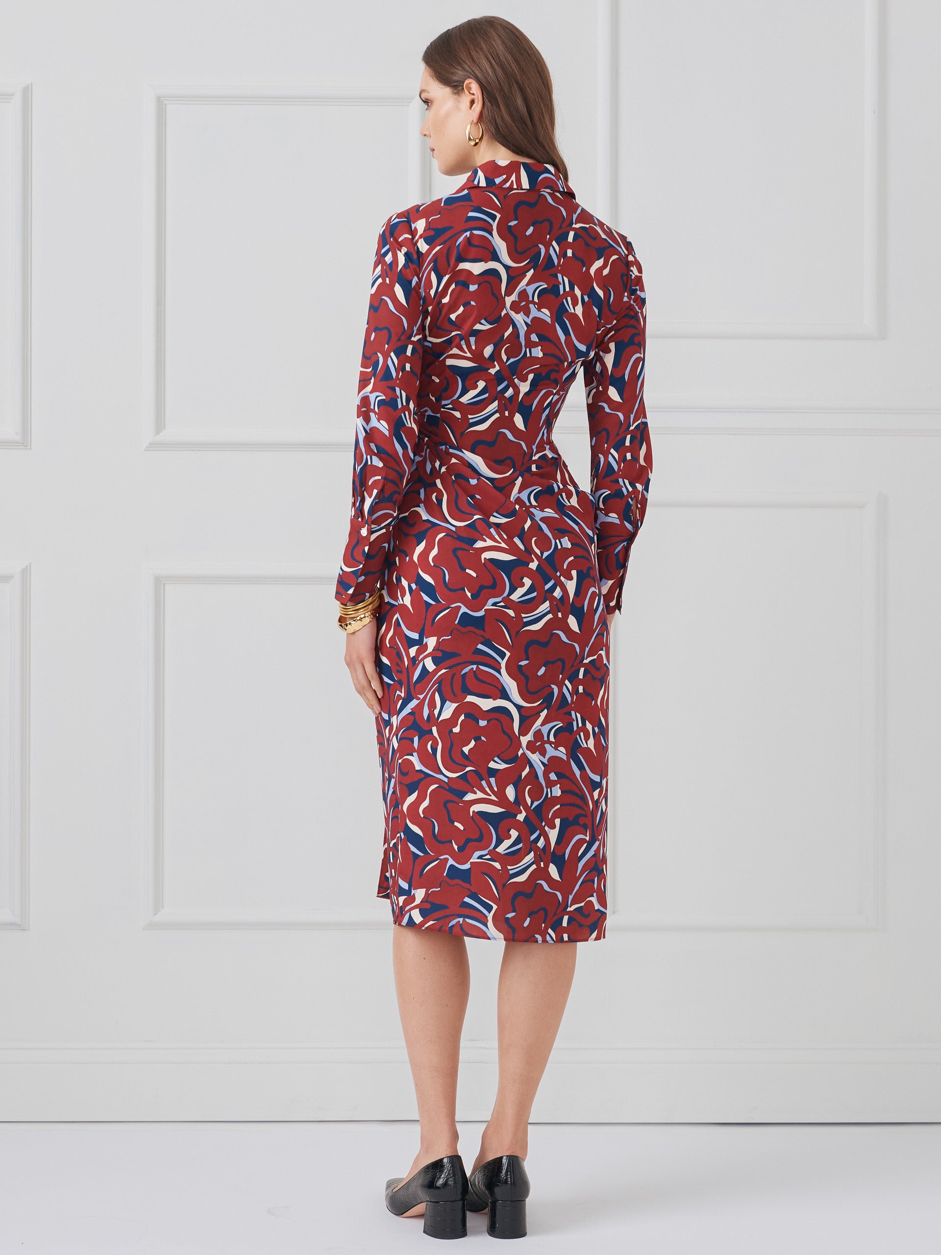 Long cuff sleeves Shirt collar Half button placket Waist tie 100% Polyester Hand wash cold. Lay flat to dry. Imported. Size & Fit47″ long from top of center back, 40 1/2″ chest, 35 1/2″ waist (size M) Model is 5’9″ and wearing a size XS