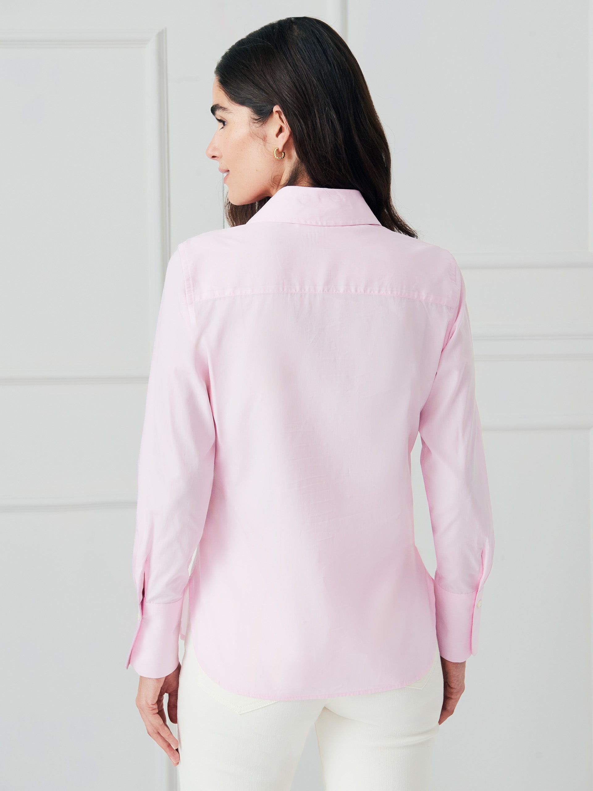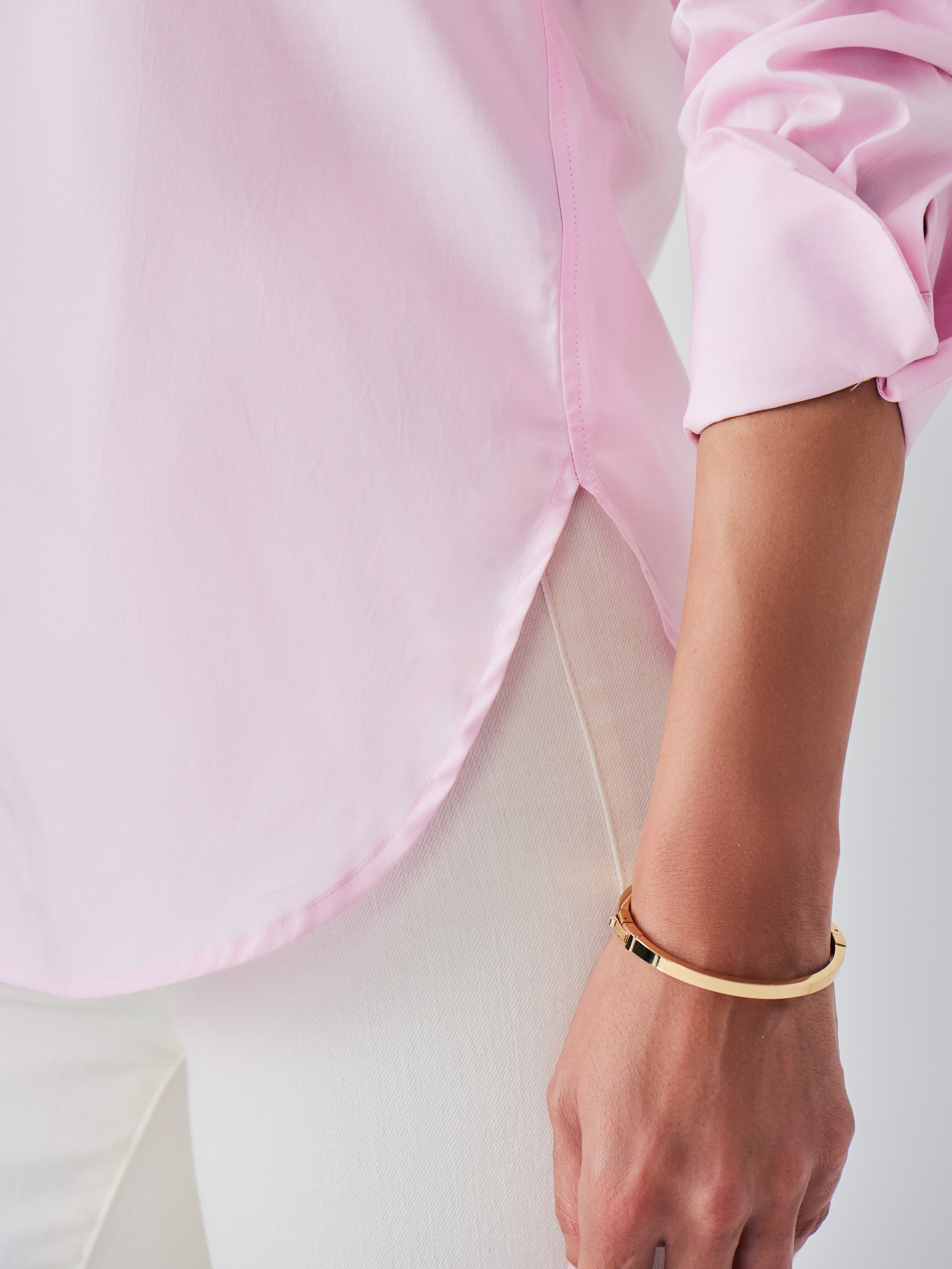 Long sleeves Shirt collar Button down Wide cuffs 100% Cotton Poplin Machine wash cold. Tumble dry low. Imported. Size & Fit26 1/2″ long from top of center back (size M) Model is 5’9″ and wearing a size XS