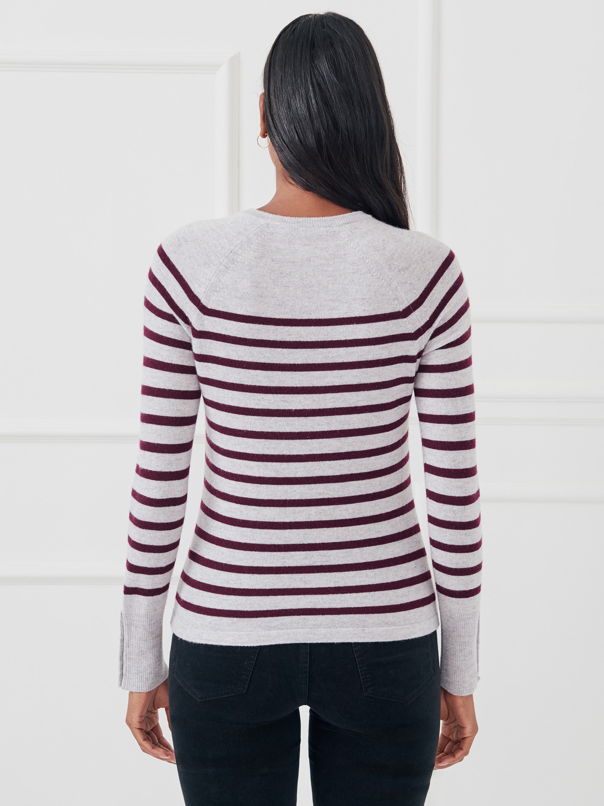 The timeless stripe gets an elevated refresh in pure cashmere. Designed with a crew neckline and accented with five signature buttons at each cuff, this pullover blends everyday comfort with understated sophistication.